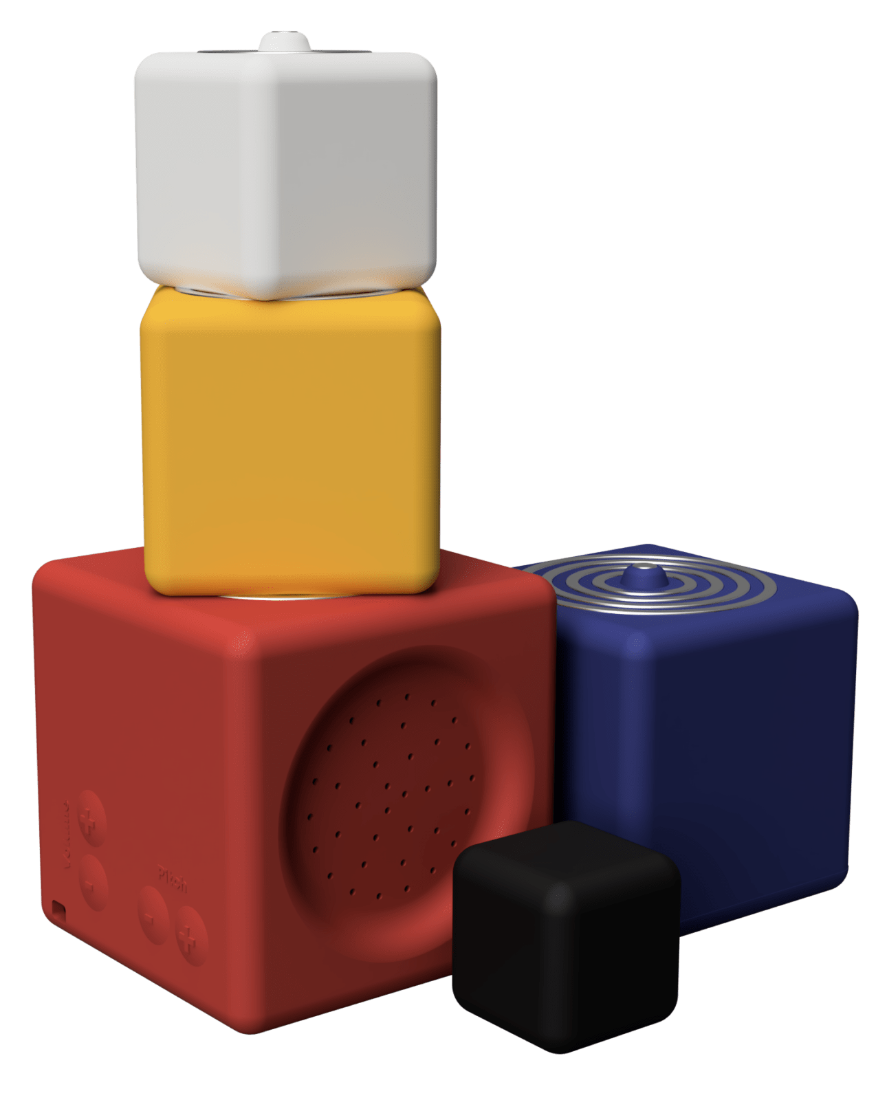 The microprocessor, speaker, and all active electronics are housed in the base block. The additional blocks only contain connecting wires.