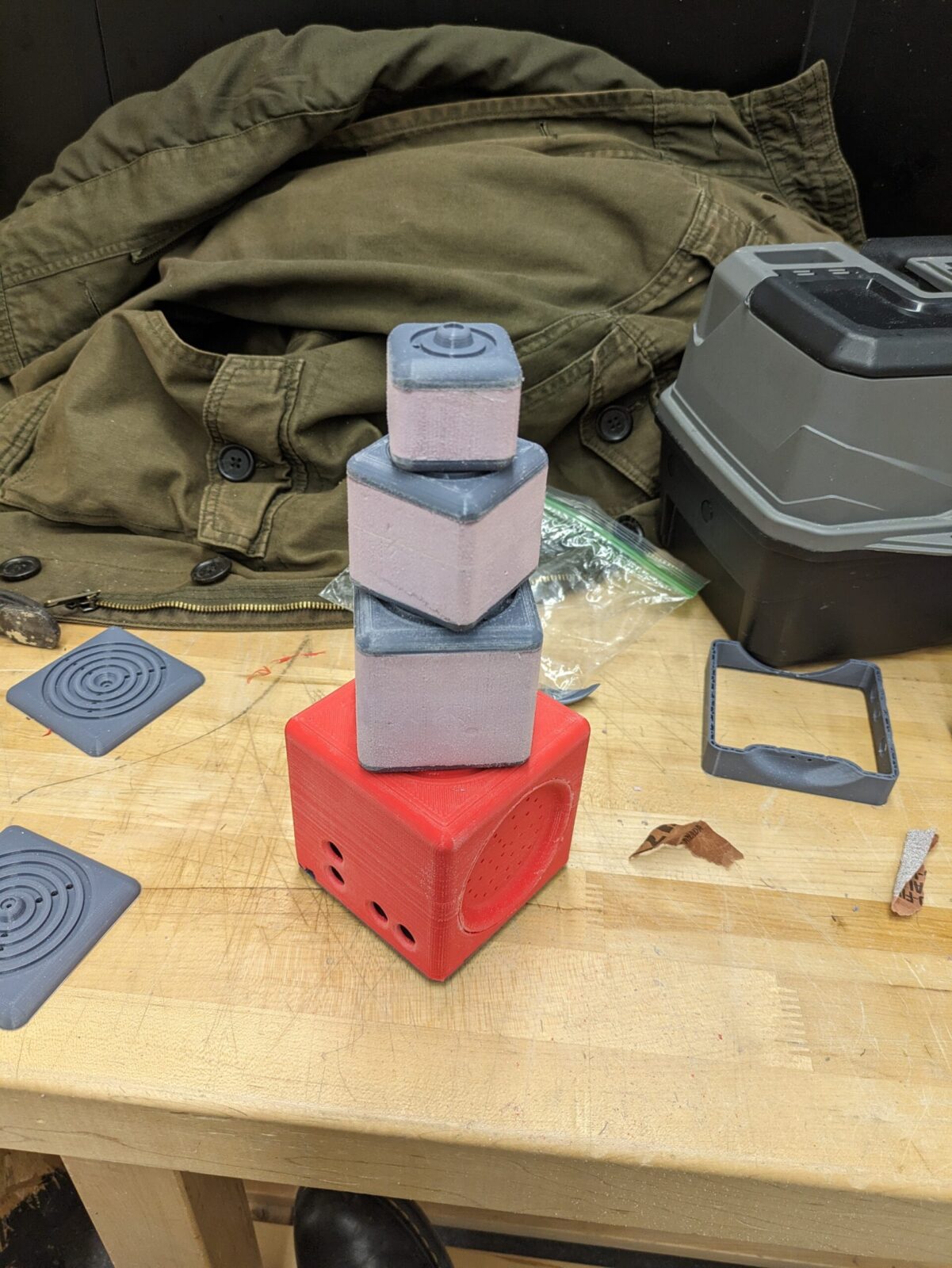This initial prototype of the Synthesis Blocks was made to test the software elements of the project and demonstrate the functionality.