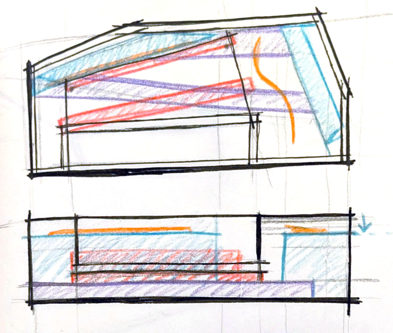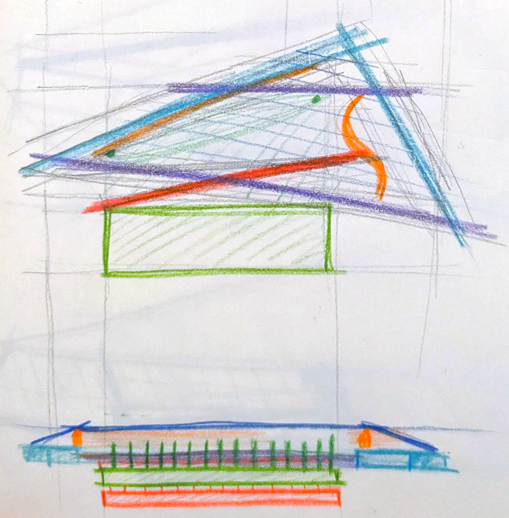 By additionally breaking down the structure, we can create an entirely pared down clavichord diagram with only the strictly necessary components floating in space. From here, any structurally or acoustically necessary additions can be made.