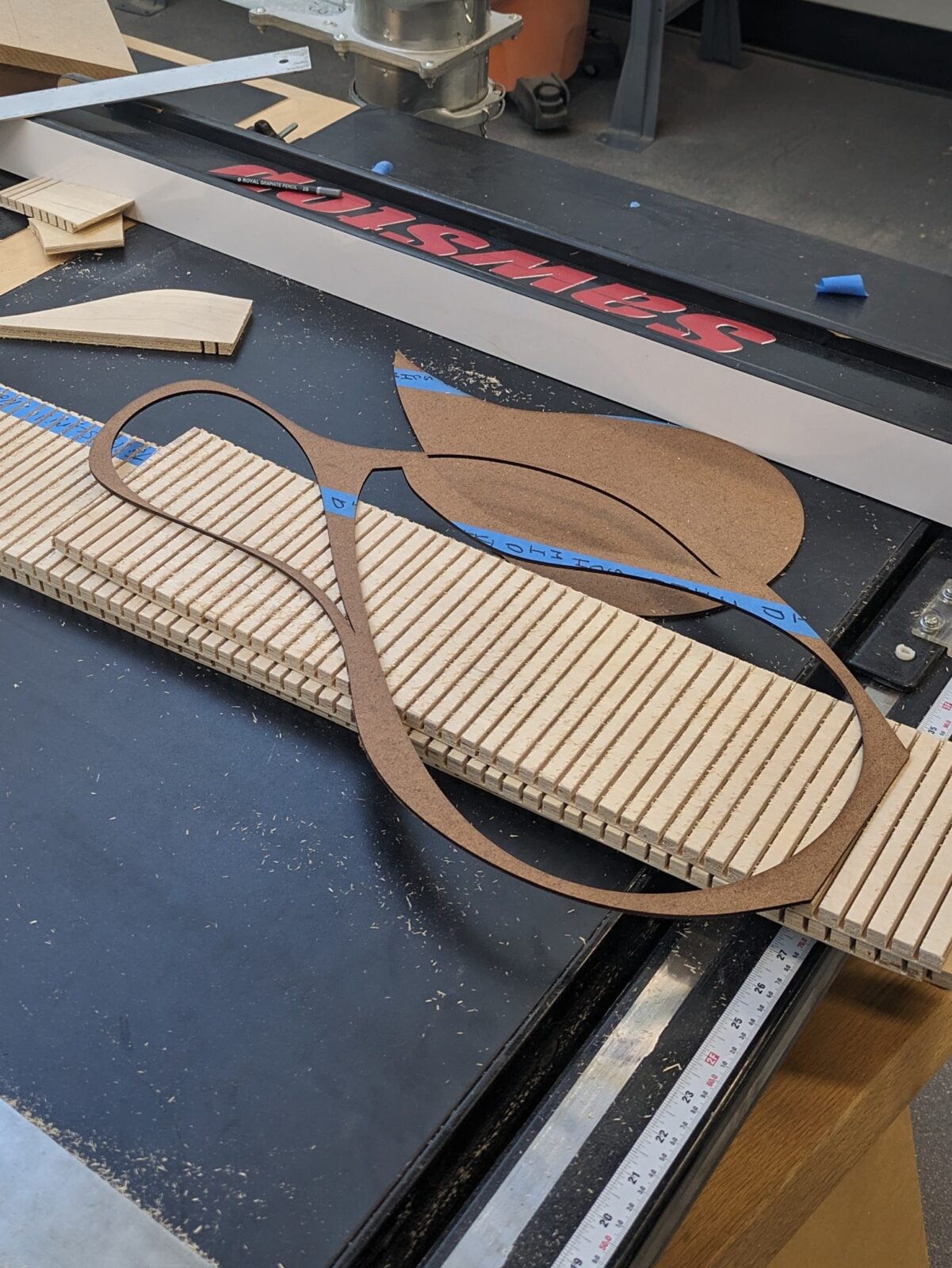I also used versions of this model to create laser-cut routing templates, and to quickly & accurately calculate the lengths of the curved sides to avoid wasted material.