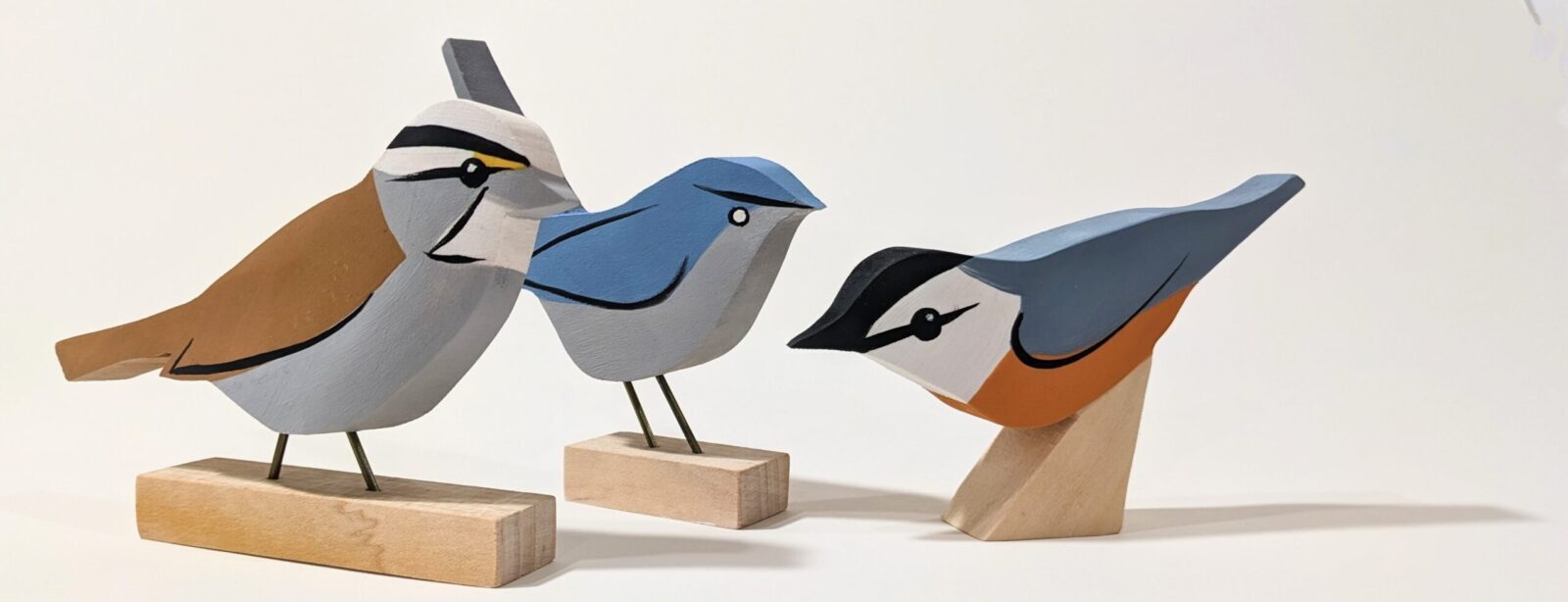 These abstracted wooden birds are designed to feel playful and be reminiscent of wooden children’s toys.